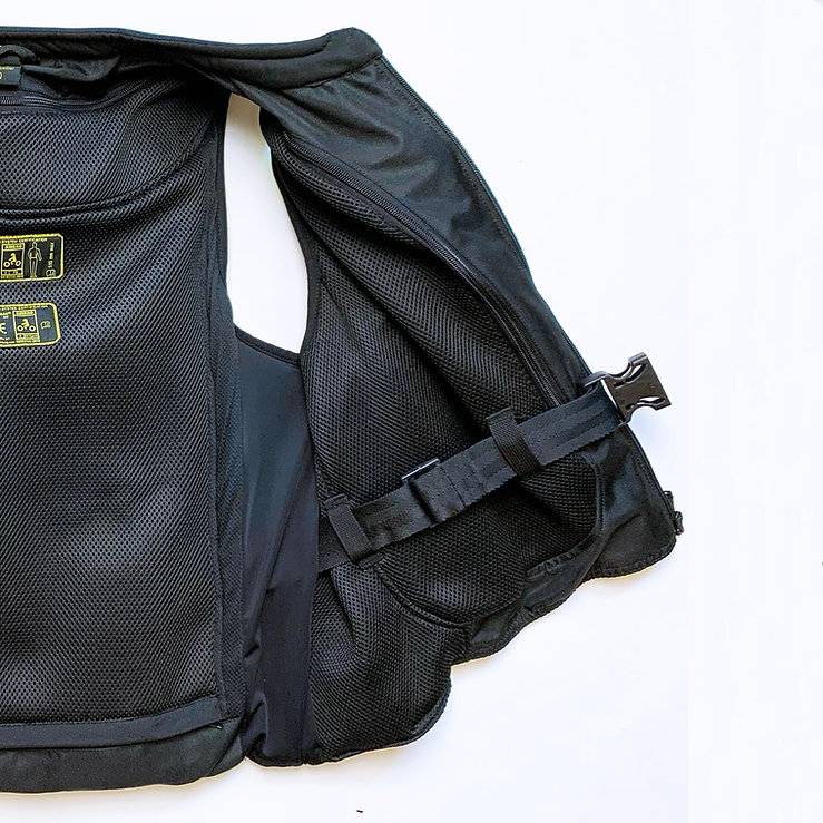 It is equipped with 2 lateral zippers to switch from one size to another and adjustments to adapt MAB v3.0 to the different jackets (winter or summer) that you can continue to use.
