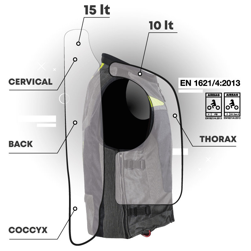 Airbag System weight: 800 gr rear airbag - 600 gr front airbag