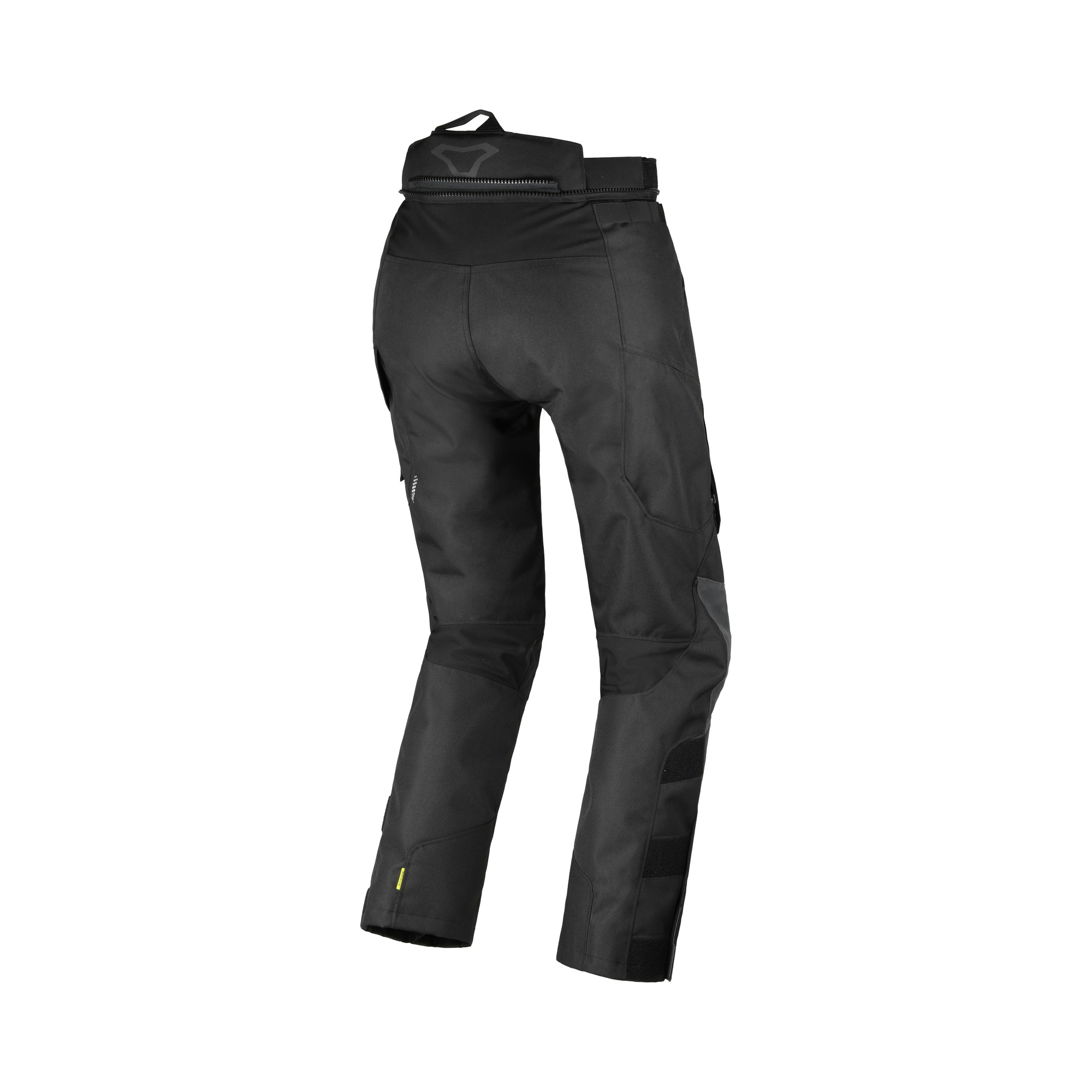 Ir gan īss, gan liels savienojuma rāvējslēdzējs, lai savienotu bikses ar jaku, un regulējamie aizdares elementi jostasvietā un potītēs ļauj perfekti pielāgot bikšu piegulumu. Jostasvietā atrodas divas ūdensnecaurlaidīgas kabatas, un kreisās kājas augšdaļā ir lielāka, aizverama ūdensnecaurlaidīga kabata.