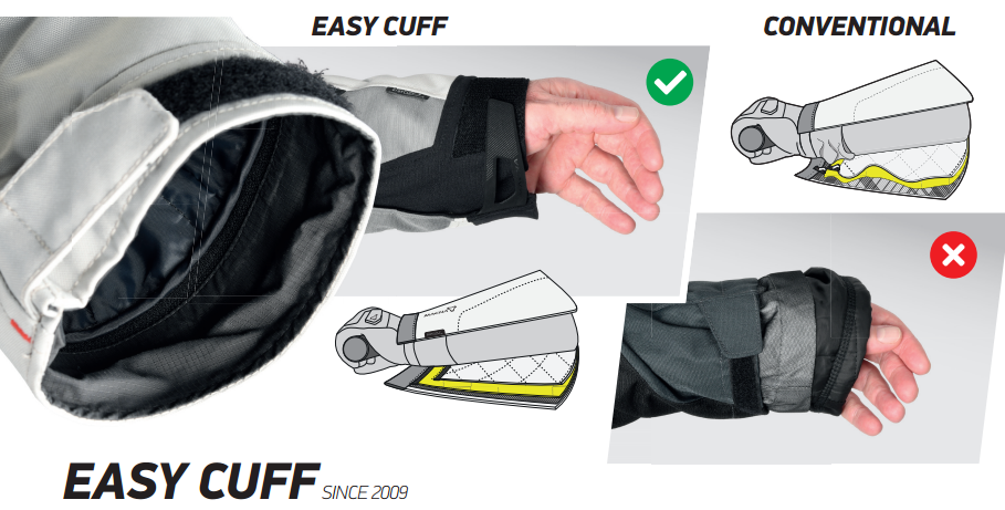 Šī jaka ir aprīkota ar mūsu pašu izstrādāto Easy Cuff™; sistēmu, kas izmanto rāvējslēdzēju – cilpu un spiedpogu vietā –, lai viss turētos savā vietā. Šī parocīgā tehnoloģija savieno noņemamos slāņus savā starpā un neļauj jūsu rokai, plaukstas locītavai vai pulkstenim iesprūst, uzvelkot vai novelkot jaku.