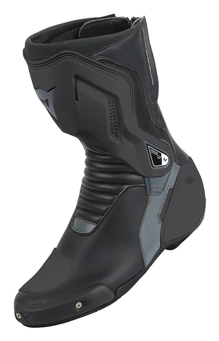 Track day protection designed for sport road riding, the Dainese Nexus Boots are injected with the racing DNA Dainese is known for. Certified to CE level 2 and incorporating the D-Axial jointed ankle, replaceable toe sliders and thermoplastic polyurethane shin plate, the Nexus Boots are ready to carve canyons and terrorize twisties.